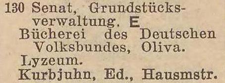 Lyzeum. Książka adresowa gminy Oliwa z 1916 roku. Zbiory Mirosława Piskorskiego.