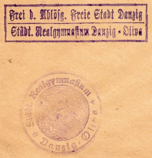Städt. Realgymnasium Danzig-Oliva. Wysłano 4. 1. 1930 roku. Przekazał Mirosław Piskorski.