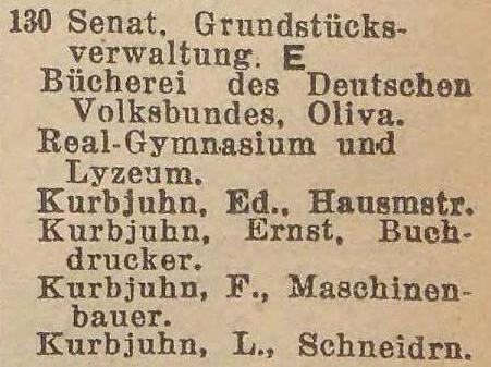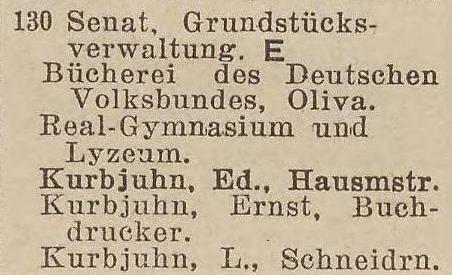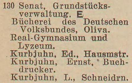 Gemeinde Oliva. Książka adresowa z 1926 roku. Ze strony: wiki-de.genealogy.net.