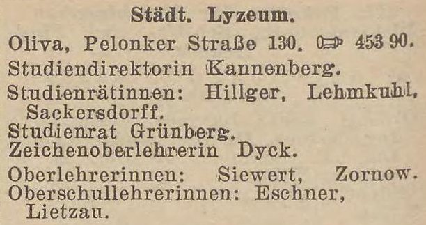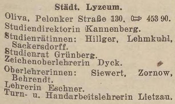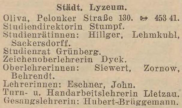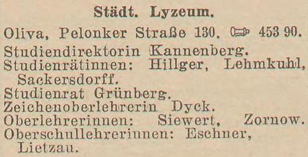 Städt. Lyzeum. Książka adresowa z 1931 roku. Zbiory Pomorskiej Biblioteki Cyfrowej.
