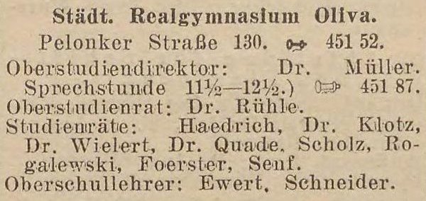 Städt. Realgymnasium Oliva. Książka adresowa z 1935 r. Zbiory Pomorskiej Biblioteki Cyfrowej.