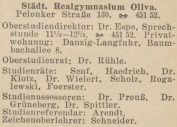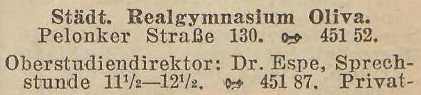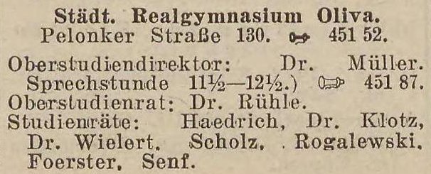 Städt. Realgymnasium Oliva. Książka adresowa z 1931 r. Zbiory Pomorskiej Biblioteki Cyfrowej.
