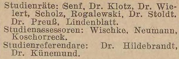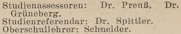 Studienassessoren: Dr. Preuß. Dr. Grüneberg, Karp, Wischke P. Rieg,