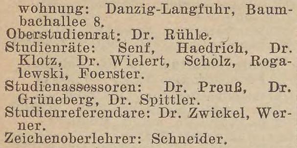 Oberstudienrat: Dr. Rühle.