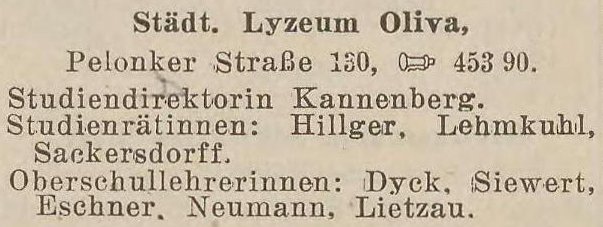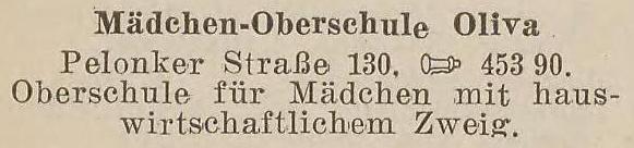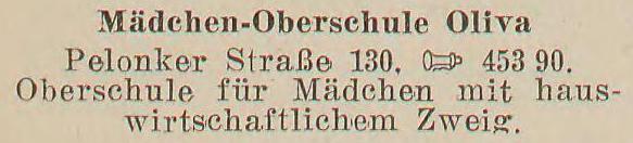 Gemeinde Oliva. Lyzeum. Książka adresowa z 1927 roku. Zbiory Pomorskiej Biblioteki Cyfrowej.