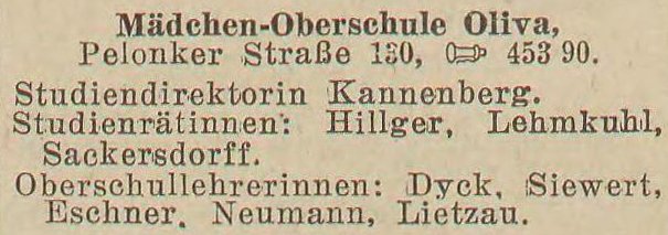 Mädchen-Oberschule Oliva.