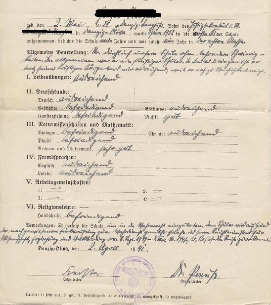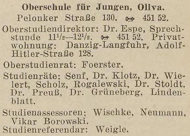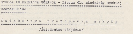 Hermann-Göring-Oberschule, Oliva.