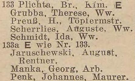 Kopitzki, Starl, Maurer. Preuß, Heinrich, Eigenthümer, (Frau Hebamme).