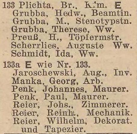 Książka adresowa z roku (Pelonkerstraße 133):