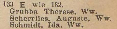 Adres: Pelonker Straße 133. Ida Schmidt zd. Schulz (ur. 1885, zm. 15.01.1943 - zapalenie płuc). Źródło: , 01.1943 poz. 7.