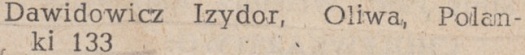 W poniższym informatorze błędnie podano nazwisko Izydora Dawidowicza. Powinno być Izydor Draniewicz. Bracia Izydor i Edward Draniewicz przyjechali do Oliwy pomiędzy 1945 a 1946 rokiem z Lidy (obecnie Białoruś), z której zostali wysiedleni. Przy ul. Polanki 133 mieszkali do 1970 roku.