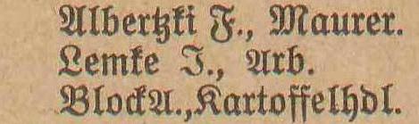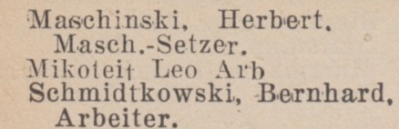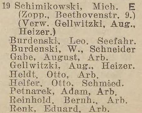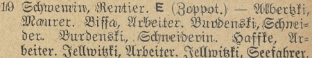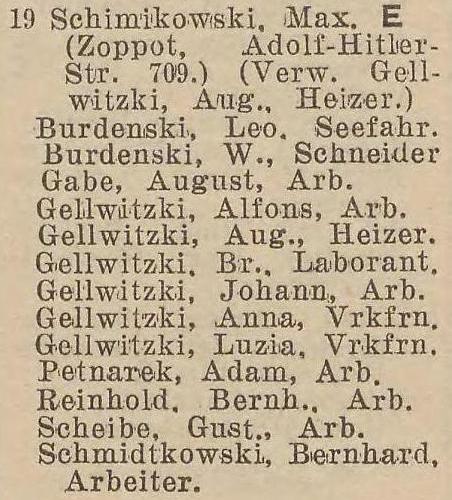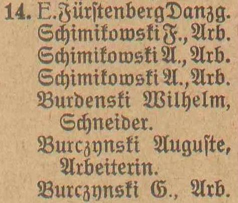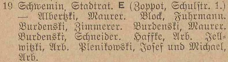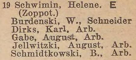 Wilhelm Burdenski (Seestraße 19). Subert Burdenski (Rosengasse 38). Switala (?). Olivaer Zeintung nr 133 z 10. 06. 1920 r.