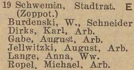 Schwemin. Książka adresowa gminy Oliwa z 1916 roku. Zbiory Mirosława Piskorskiego.