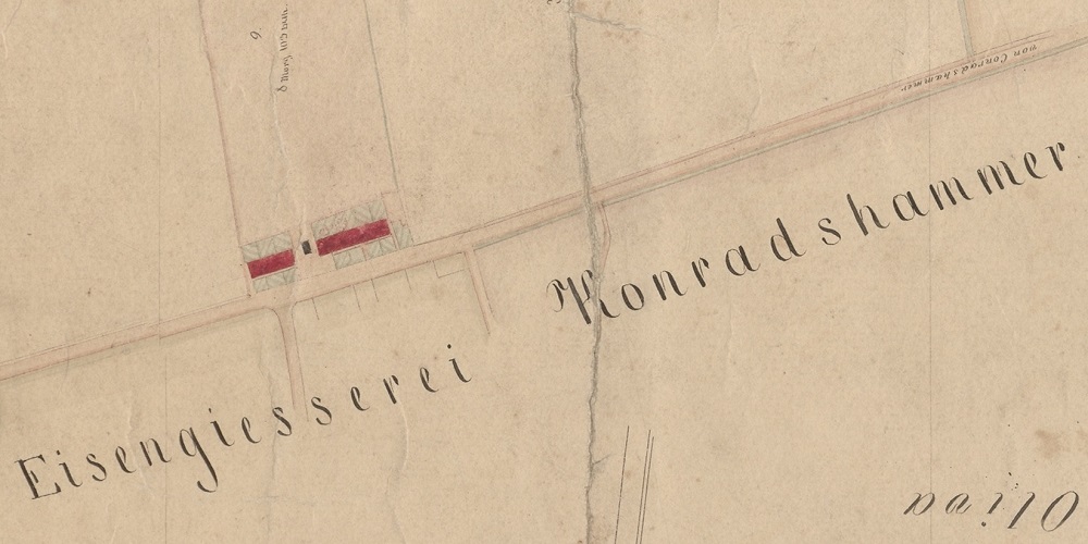 Eisengiesserei Konradshammer. Fragment planu z 1854 roku. Zbiory APG.