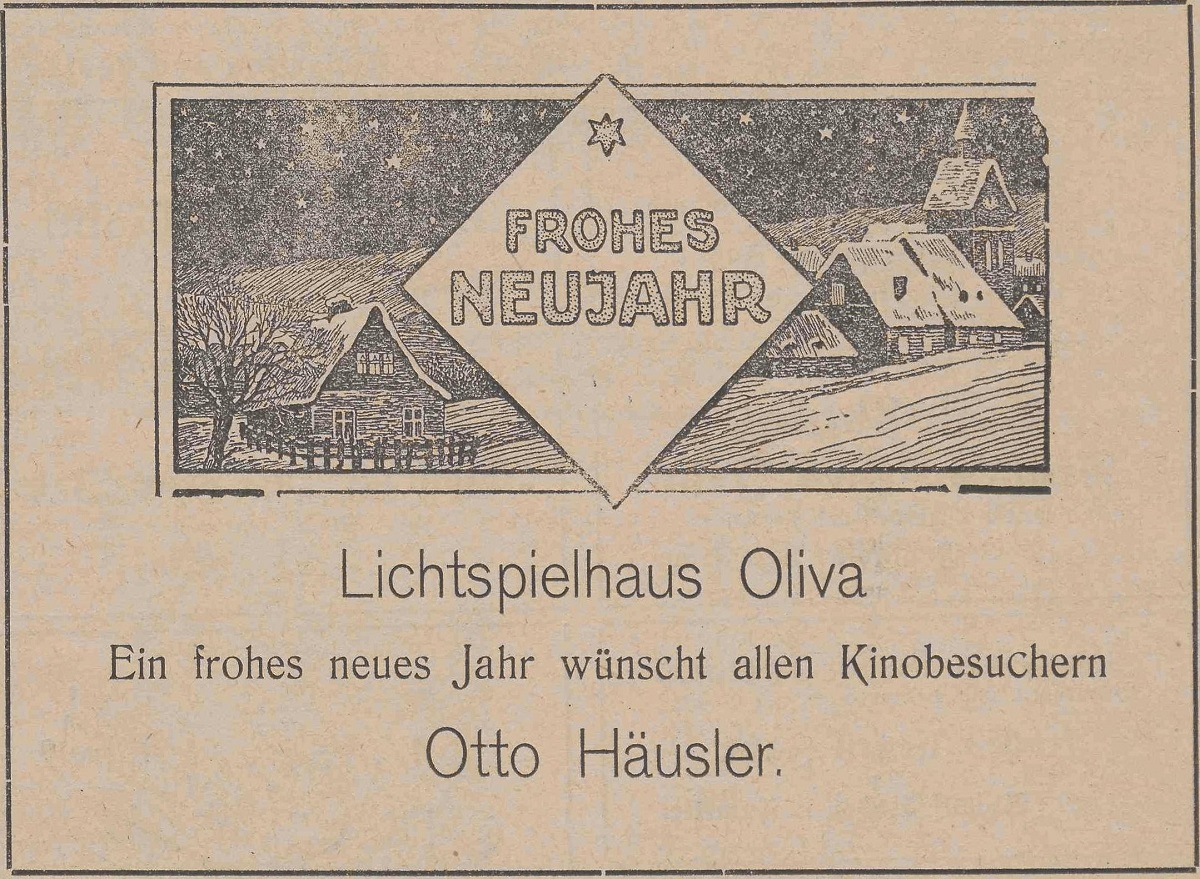 Lichtspielhaus Oliva. Otto Häusler. Podziękowania noworoczne, Danziger General (Olivaer Zeitung) nr 306 z 31. 12. 1926.