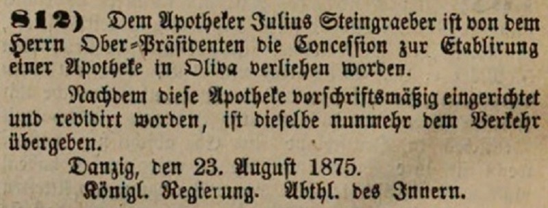 Julius Stenigräber. Baukontrolle Oliva IXX. Wpis z 03. 03. 1887. Przekazała Grażyna Niemyjska.