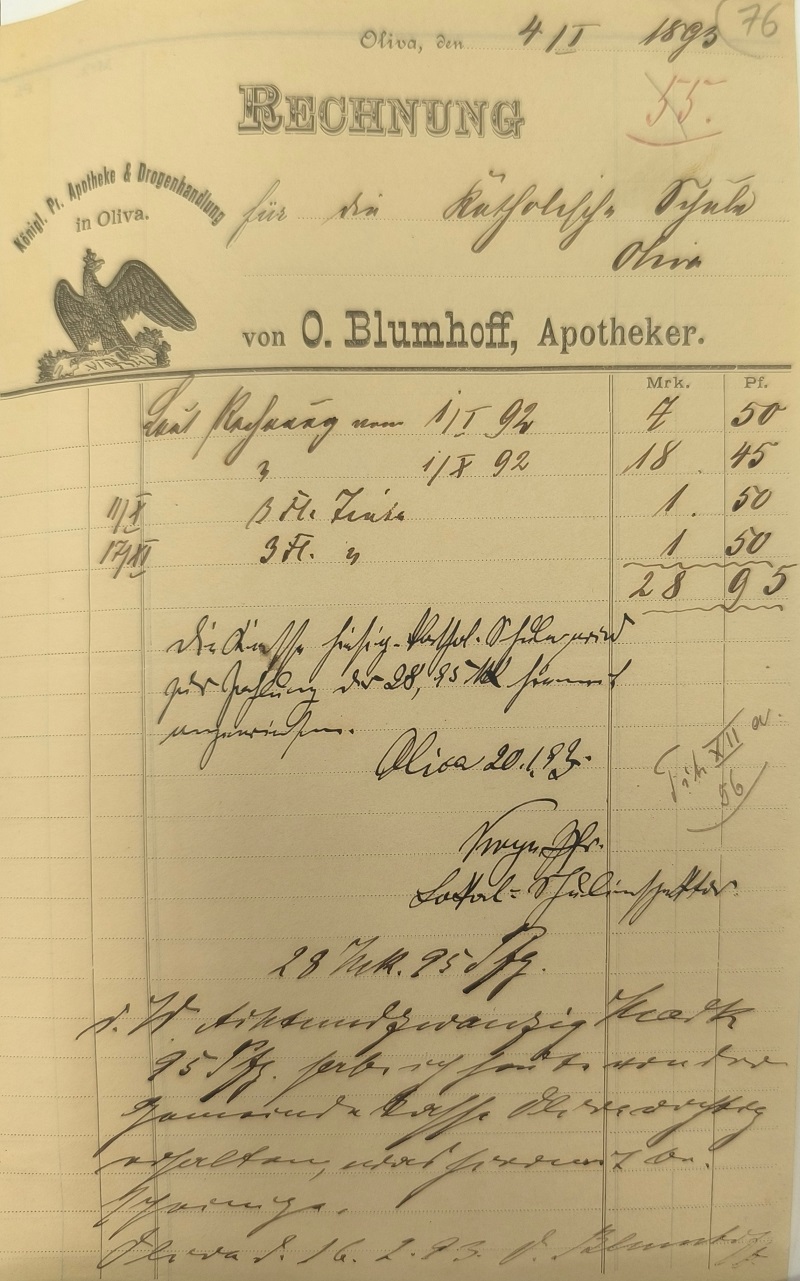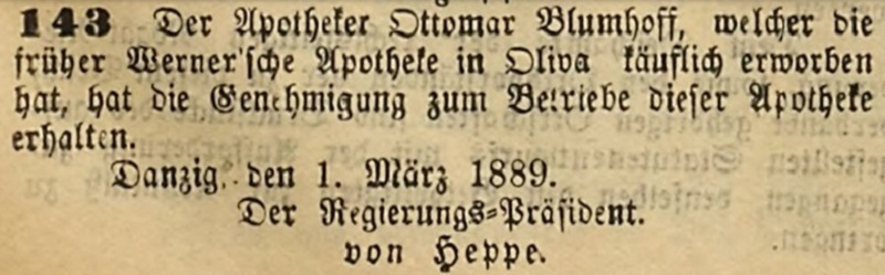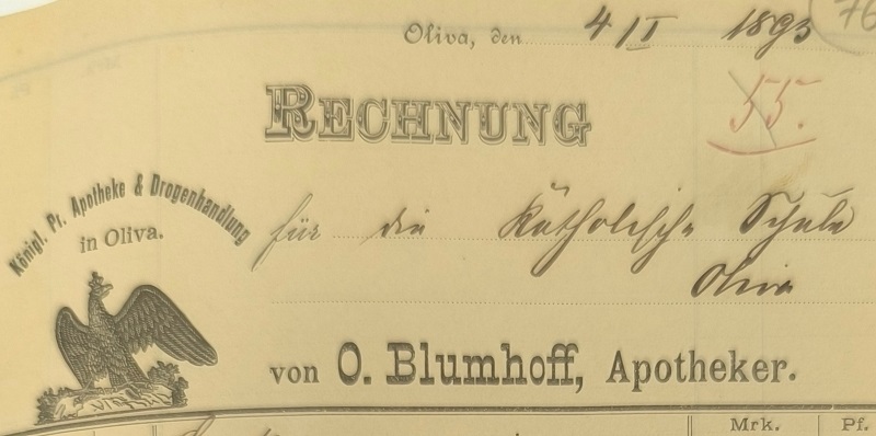 O. Blumhoff, Apotheker. 04. 01. 1893. Przekazała Grażyna Niemyjska.