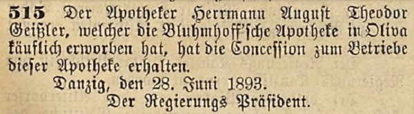 Geißler, H., właściciel apteki (Apothekenbesiber).