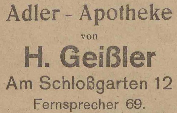 Adler Aphoteke. Hermann Geißler. Reklama z 1924 roku. Zbiory Mirosława Piskorskiego.