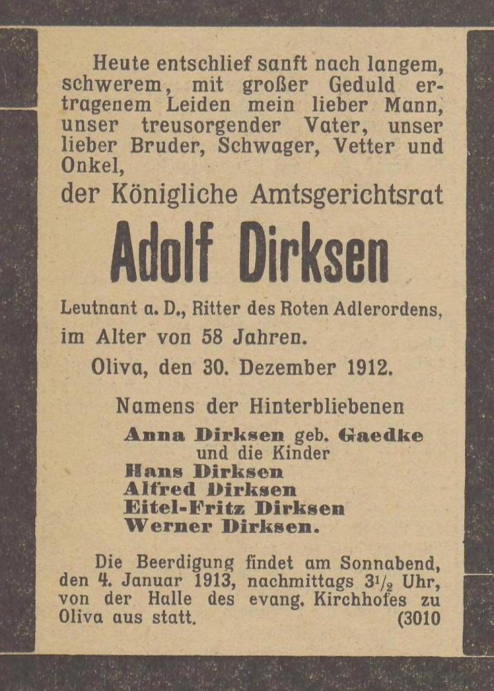Śmierć matki Helene Koppen zd. Eichmann. Olivaer Zeintung nr 20 z 25. 01. 1927 r.