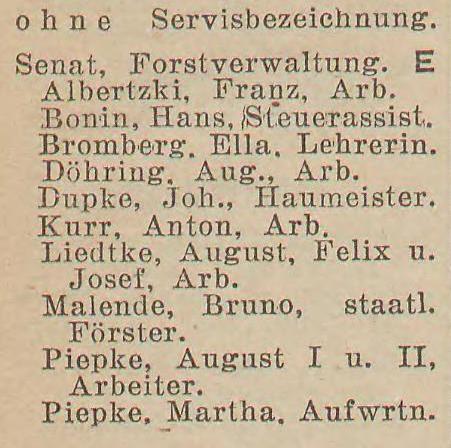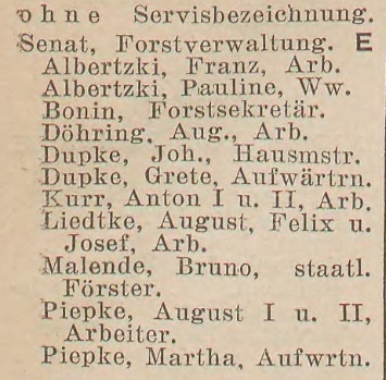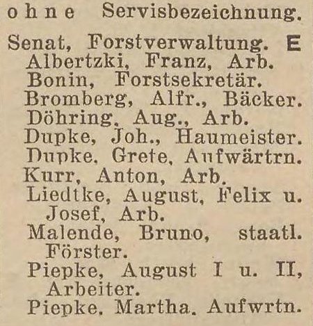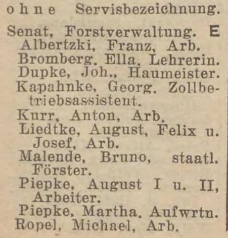 Książki adresowe z 1927 i 1928 podają leśniczówkę "Försterei Renneberg", ale nie znaleziono tam spisu mieszkańców Renneberg.