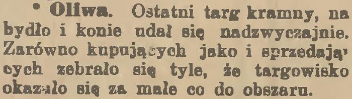 Mamuszka: Od 1840 roku w Oliwie zaczęto organizować jarmarki, które odbywały się co roku w dniach 9 marca i 10 października. Handlowano na nich końmi, bydłem i innymi produktami wiejskimi.