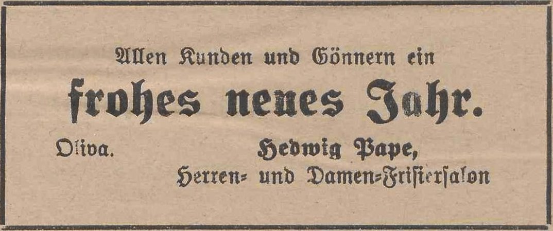 Frisier-Salon, Pape. Podziękowania noworoczne, Danzig-Olivaer Zeitung nr 282 z 30-31. 12. 1933.