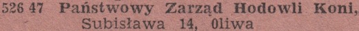 Państwowy Zakład Hodowli Koni. Książka telefoniczna z 1946 r. Zbiory Krzysztofa Gryndera.