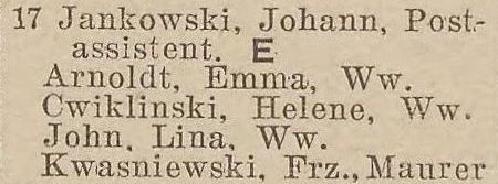 Cwiklinski, Helene, wdowa (Witwe).