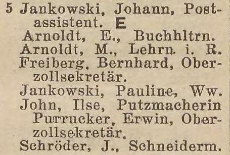 Johann Jankowski. Książka adresowa z 1929 roku. Zbiory Pomorskiej Biblioteki Cyfrowej.