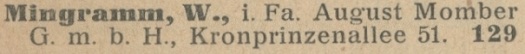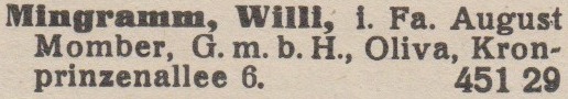 Mingramm Willy, i. Fa. August Momber G.m.b.H. Książka tel. z 1925 roku. Zbiory Mirosława Piskorskiego.