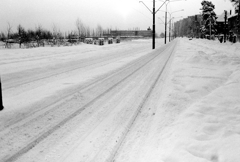 Fragment ulicy Wita Stwosza. Zima lata 80. XX wieku. © Fot. Krzysztof Jakubowski.