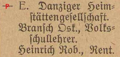 Bransch. Książka adresowa gminy Oliwa z 1914 roku. Zestawienie: Heimstatte. DawnaOliwa.pl.
