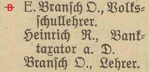 Bransch. Książka adresowa gminy Oliwa z 1913 roku. Zestawienie: Heimstatte. DawnaOliwa.pl.