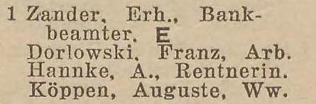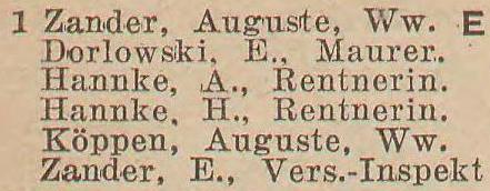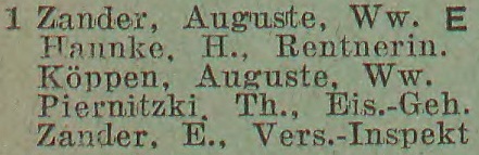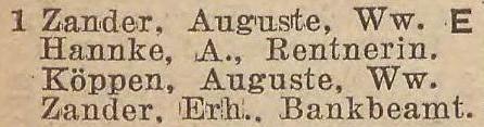 Zander, Auguste, wdowa (Witwe).