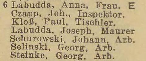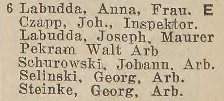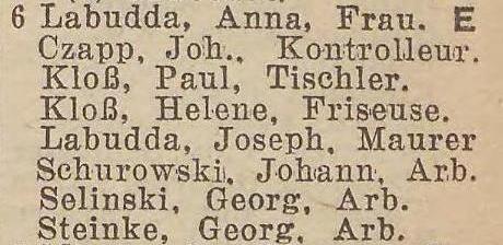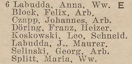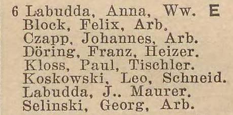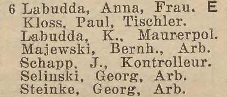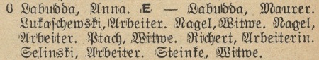 Anna Labuda. Książka adresowa gminy Oliwa z 1916 roku. Zbiory Mirosława Piskorskiego.