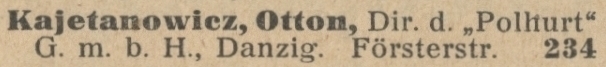 Otton Kajetanowicz. "Polhurt". Książka telefoniczna z 1925 roku. Zbiory Mirosława Piskorskiego.