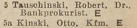 R. Tauschinski. Kinski Otto. Książka adresowa z 1931 roku. Zbiory Pomorskiej Biblioteki Cyfrowej.