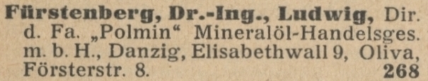 Ludwig Fürstenberg. "Polmin". Książka telefoniczna z 1925 roku. Zbiory Mirosława Piskorskiego.