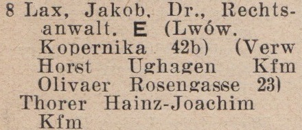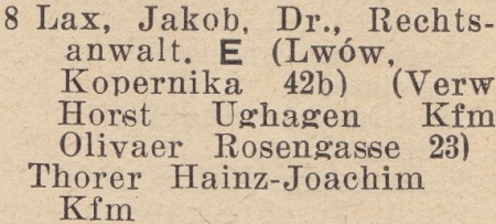 Jakob Lax. Książka adresowa z 1939 roku. Zbiory Krzysztofa Gryndera.