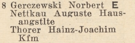 Norbert Gorczewski. Książka adresowa z 1940-1941 roku. Zbiory TPG Strefa Historyczna WMG.