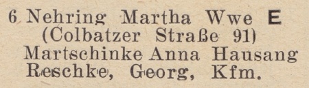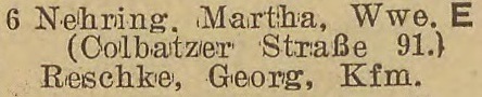 Martha Nehring. Reschke. Książka adresowa z 1935 roku. Zbiory Pomorskiej Biblioteki Cyfrowej.
