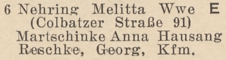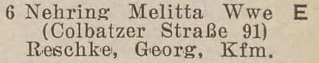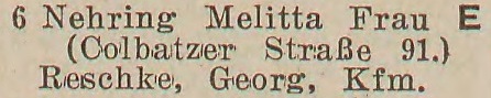 Melitta Nehring. Reschke. Książka adresowa z 1942 roku. Zbiory Pomorskiej Biblioteki Cyfrowej.