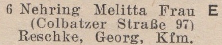 Melitta Nehring. Reschke. Książka adresowa z 1937-1938 roku. Zbiory Piotra Mazurka.