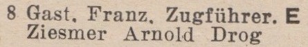 Franz Gast. Ziesmer. Książka adresowa z 1939 roku. Zbiory Krzysztofa Gryndera.