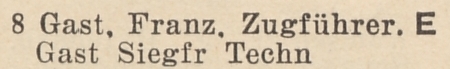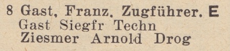 Franz Gast. Ziesmer. Książka adresowa z 1937-1938 roku. Zbiory Piotra Mazurka.