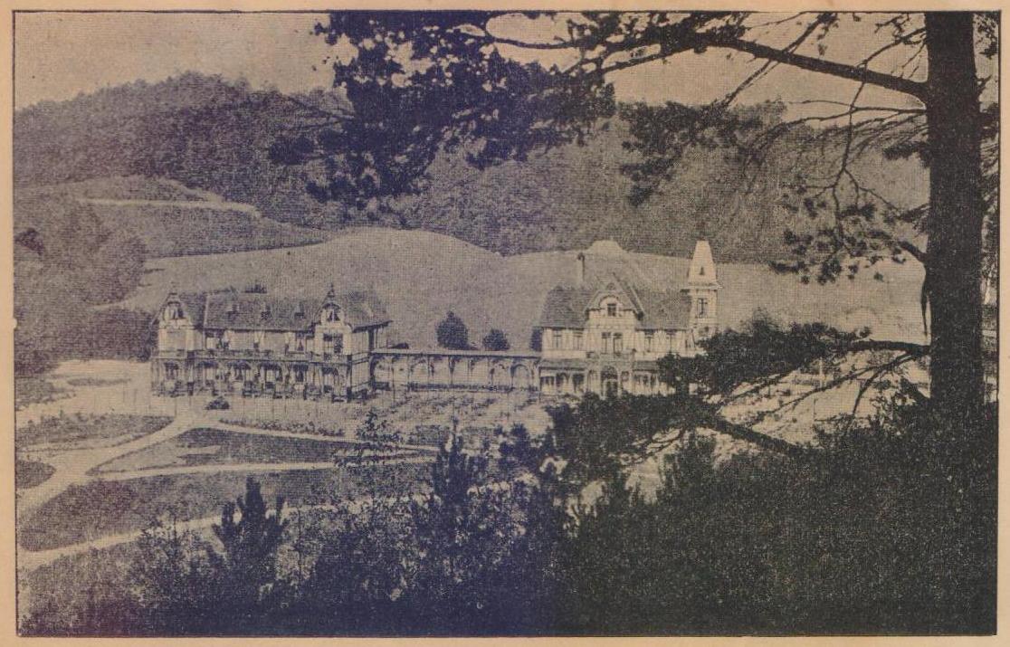 Przed nami rozłożone zielone maty - pokój nas wita, w młodej zieleni ćwierkanie - tam już pojawia się stary młyn - tam staw bogaty w ryby - a w środku tej idyllicznej samotności wznosi się nowy Kurhaus w eleganckim szwajcarskim stylu - Strauchmühle!