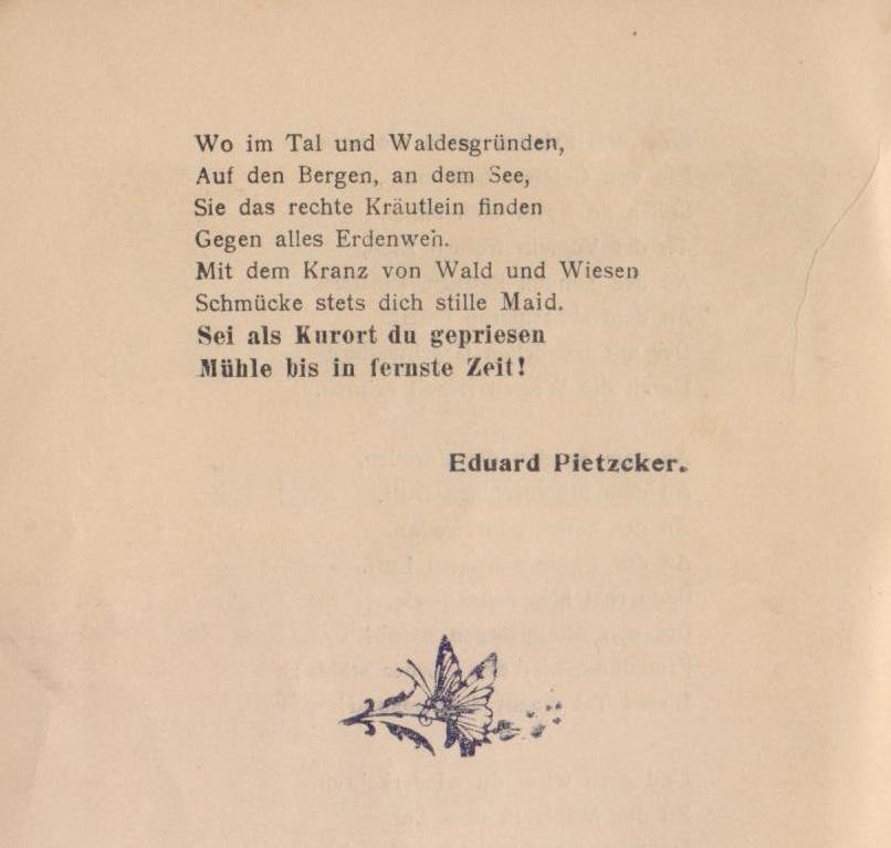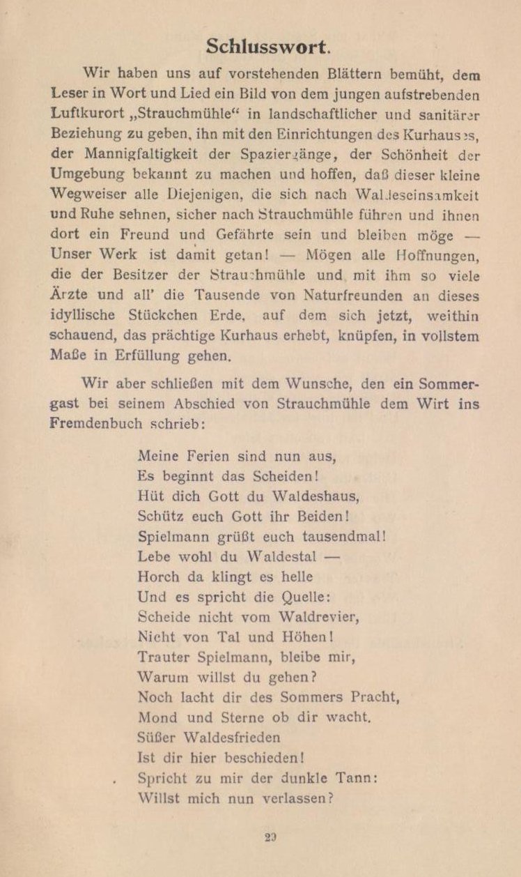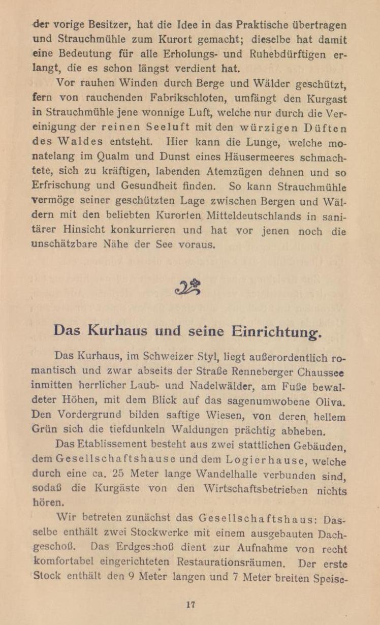 Tymi słowami pozdrawiam cię, miły czytelniku, który bierze tę książeczkę w swoje ręce, aby dowiedzieć się z niej, co oferuje ci nowe uzdrowisko klimatyczne Strauchmühle, gdy przyjdziesz do niego dla gości i odpoczniesz.