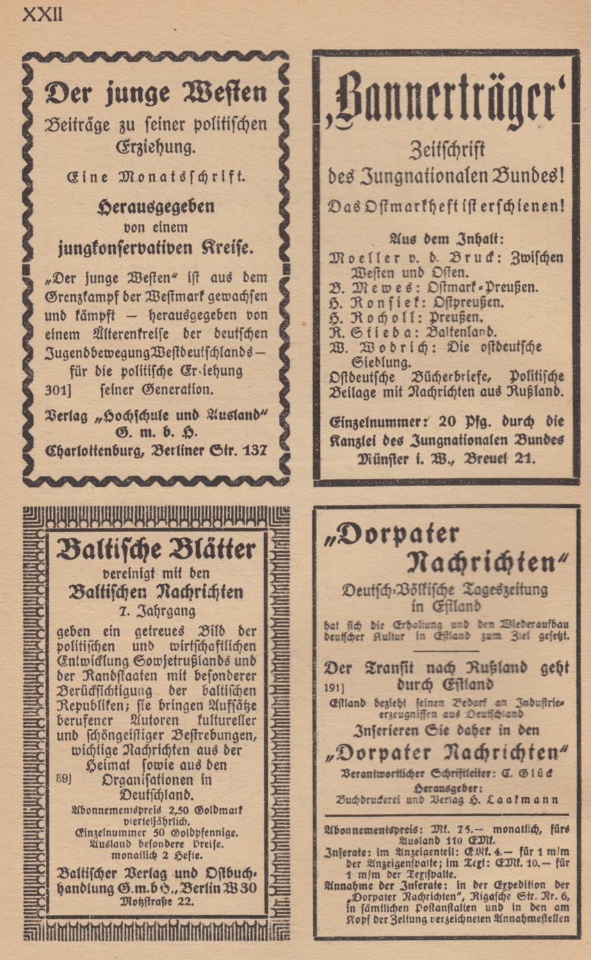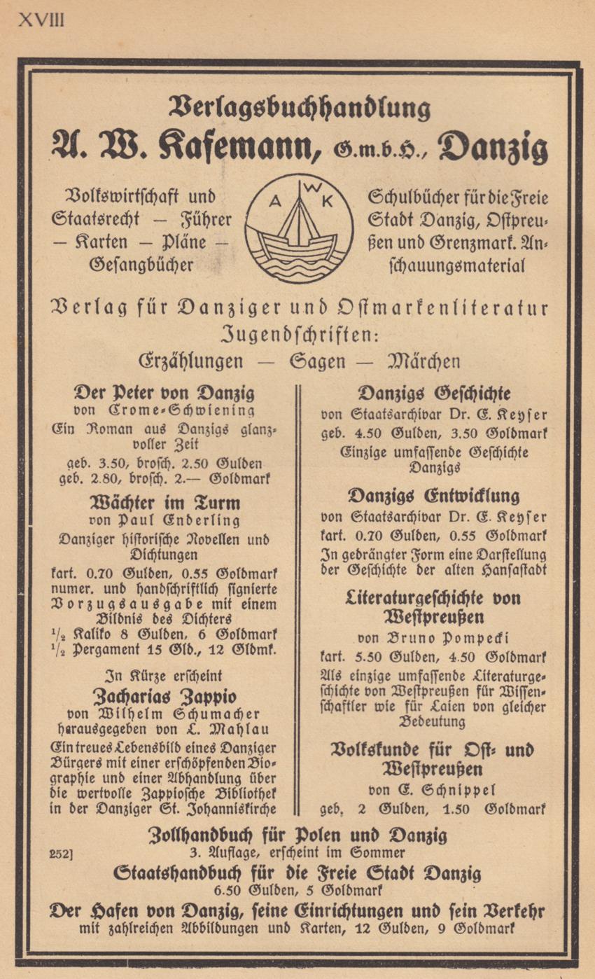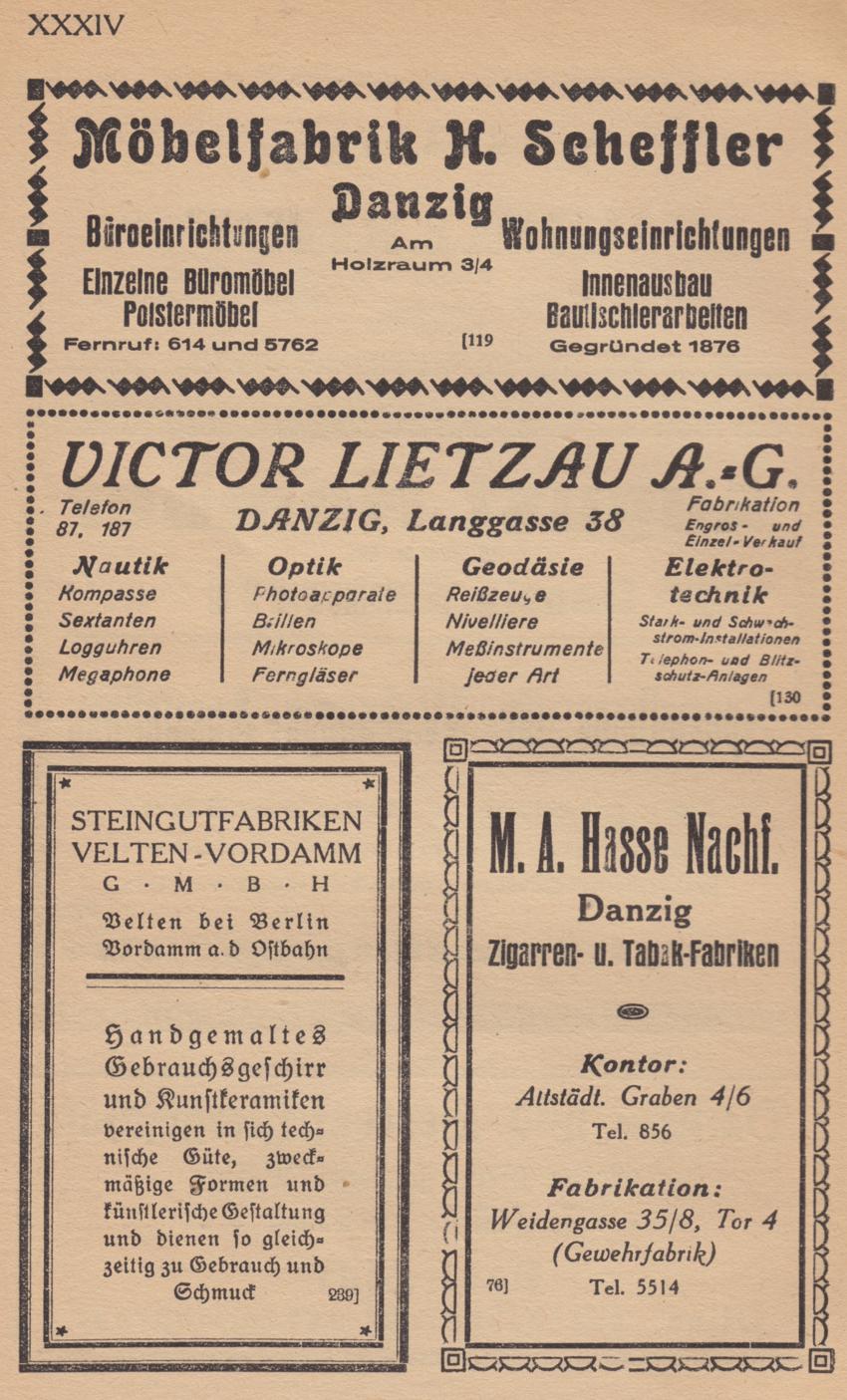 Start  ›  Biblioteczka oliwska  ›  Ostdeutsche Monatshefte   ›  Reklamy  ›