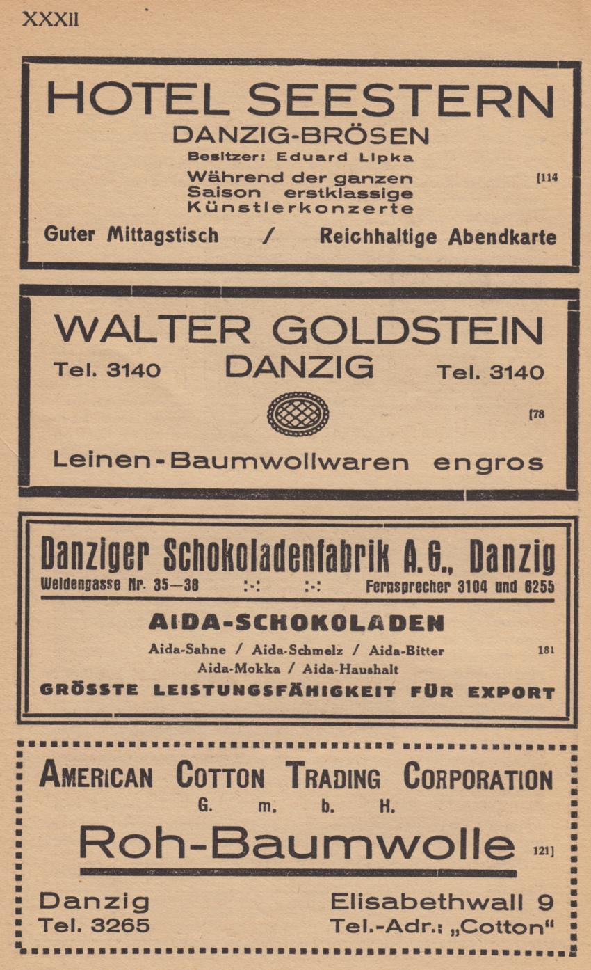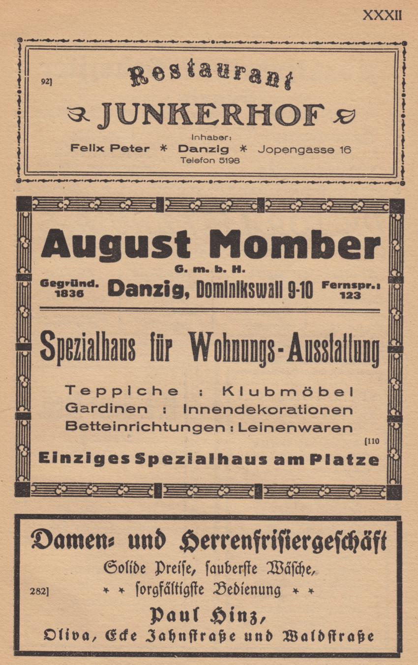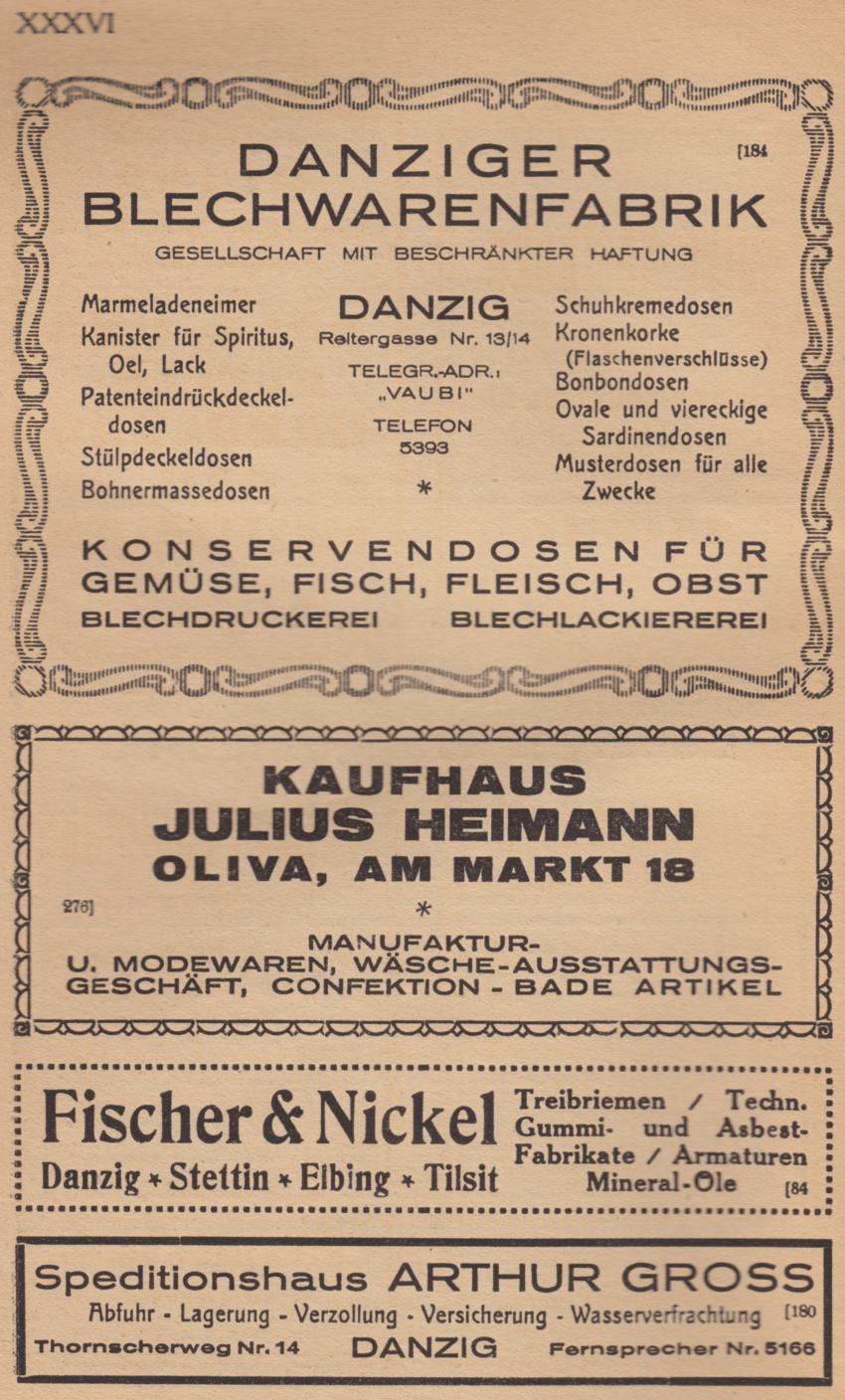 Start  ›  Biblioteczka oliwska  ›  Ostdeutsche Monatshefte   ›  Reklamy  ›